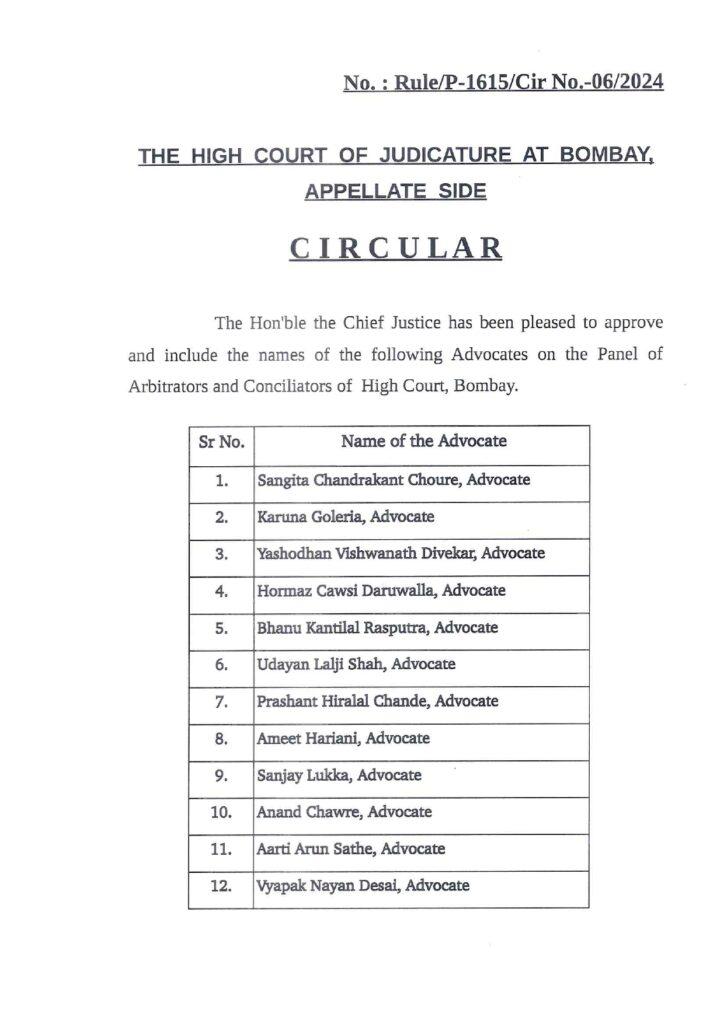 Adv Anand Chawre Sir empanelled as an Arbitrator on the Panel of Arbitrators by the Bombay High Court with effect from 23.04.2023.
